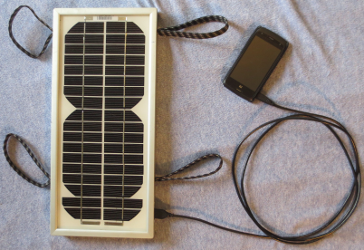 The phone has a charger that connects via a micro-USB connector. It can drain power from a AC charger or standard USB port (the AC charger is slightly faster). Standard USB port has 5 Volts and should provide current up to 0.5 Ampere. This means it has output of 2.5 Watts. I decided to buy a slightly more powerful solar panel with output power of 5 Watts. Unfortunately the solar panel has open circuit voltage of 21 Volts, so connecting it directly to phone would almost certainly broke the phone. To connect the panel to the phone I used a DC-DC changer. I tried to build a DC-DC changer myself, but it was not working properly. Even when it had good efficiency when powered from 12V battery it was not working well when connected to a solar cells. The overall efficiency at full daylight was somewhere around 30%. Finally I bought a DC-DC changer on Ebay and it works really great.